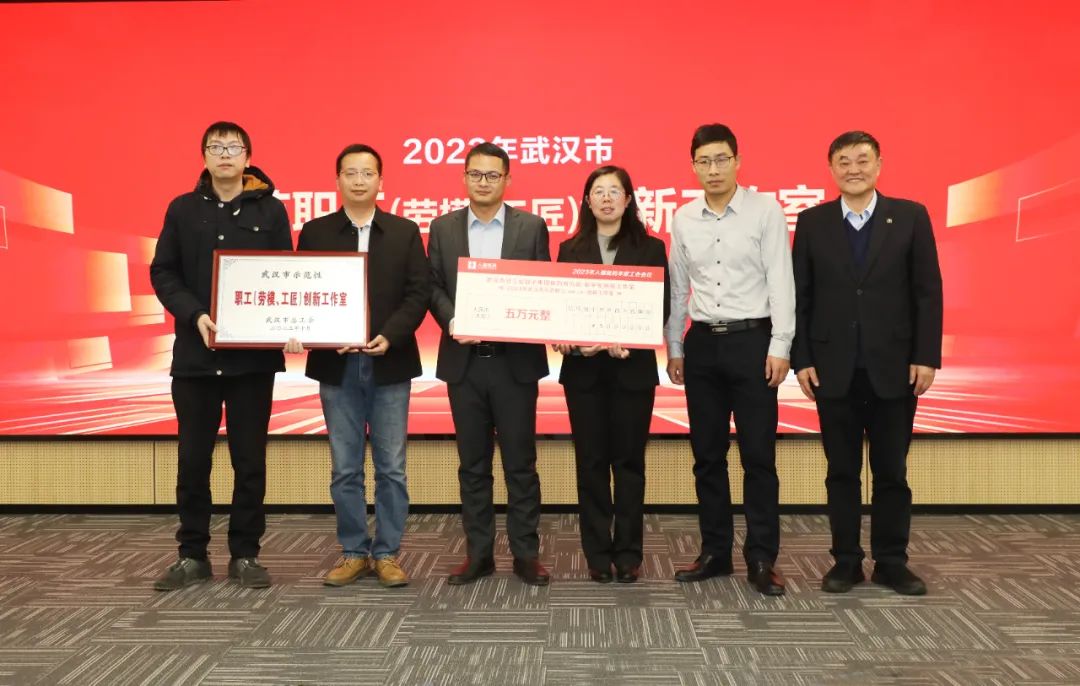 集團(tuán)黨委書記、董事長(zhǎng)李杰為張學(xué)軍創(chuàng)新工作室團(tuán)隊(duì)頒獎(jiǎng)