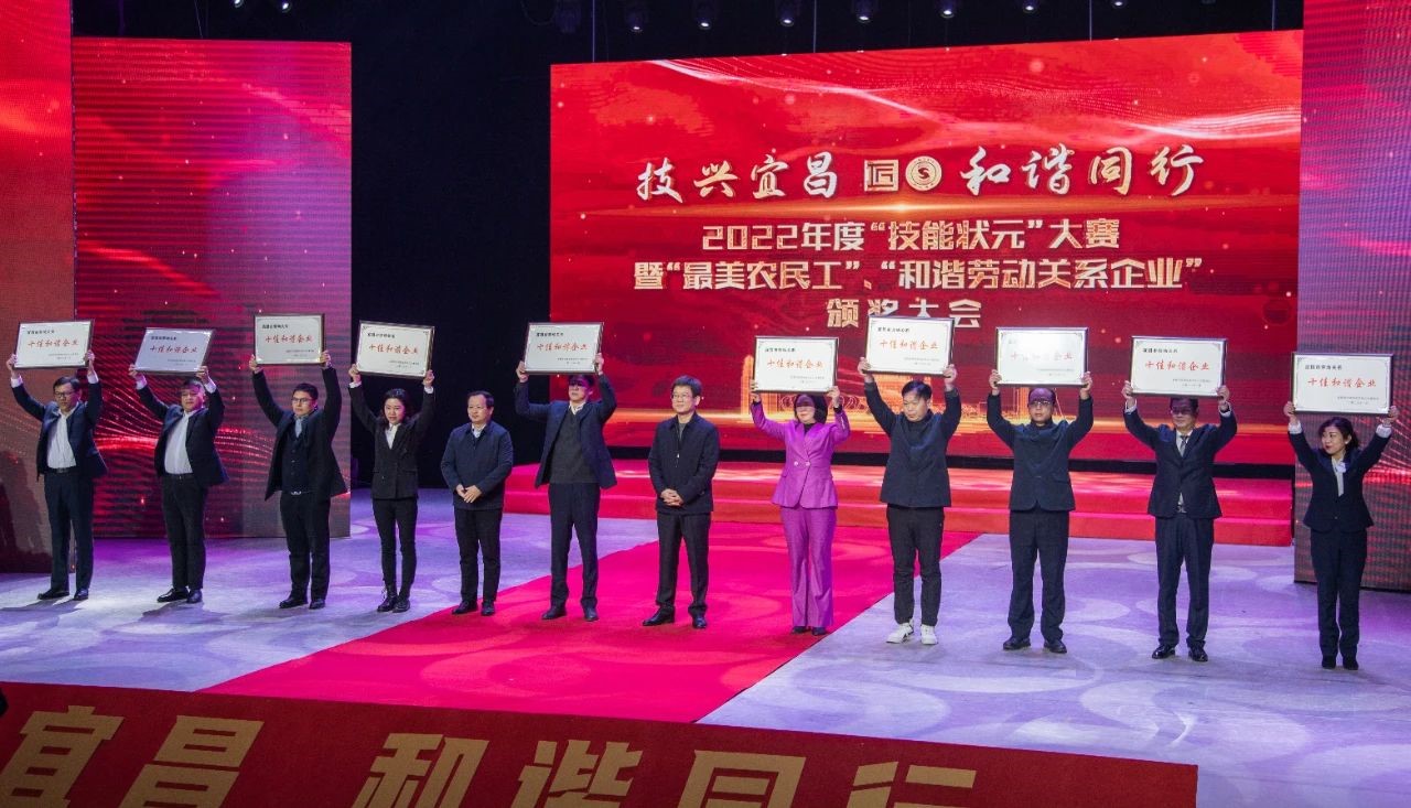 湖北省人力資源和社會保障廳黨委書記、廳長劉艷紅,宜昌市委副書記、政法委書記張桂華,宜昌市委常委、組織部部長汪偉,宜昌市委常委、常務(wù)副市長汪元程,宜昌市委常委、市委統(tǒng)戰(zhàn)部部長、市總工會主席燕元沂,宜昌市委常委、市委宣傳部部長周正英分別為各獲獎單位頒獎,人福醫(yī)藥集團黨委書記、董事長李杰出席大會?!昂椭C企業(yè)”創(chuàng)建是宜昌市深入推進“和諧同行”能力提升三年行動,努力構(gòu)建高質(zhì)量的和諧勞動關(guān)系,打造勞動者與企業(yè)共進共榮的勞動關(guān)系和諧企業(yè)典型的重要途徑,是宜昌市加快強產(chǎn)興城、創(chuàng)建典范城市的重要舉措。