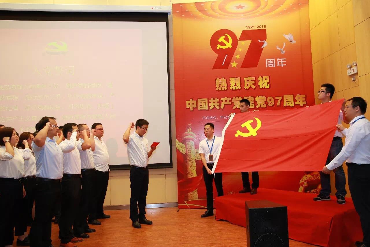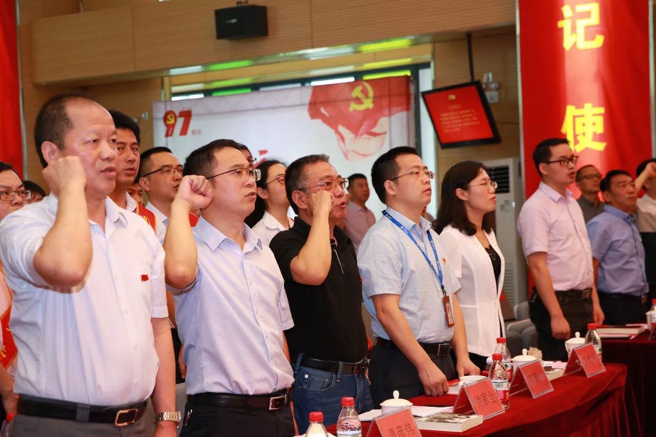 在莊嚴(yán)、肅穆的入黨宣誓儀式中,在鮮紅的黨旗前,大會舉行新黨員入黨宣誓儀式,臺下全體黨員重溫入黨誓詞。