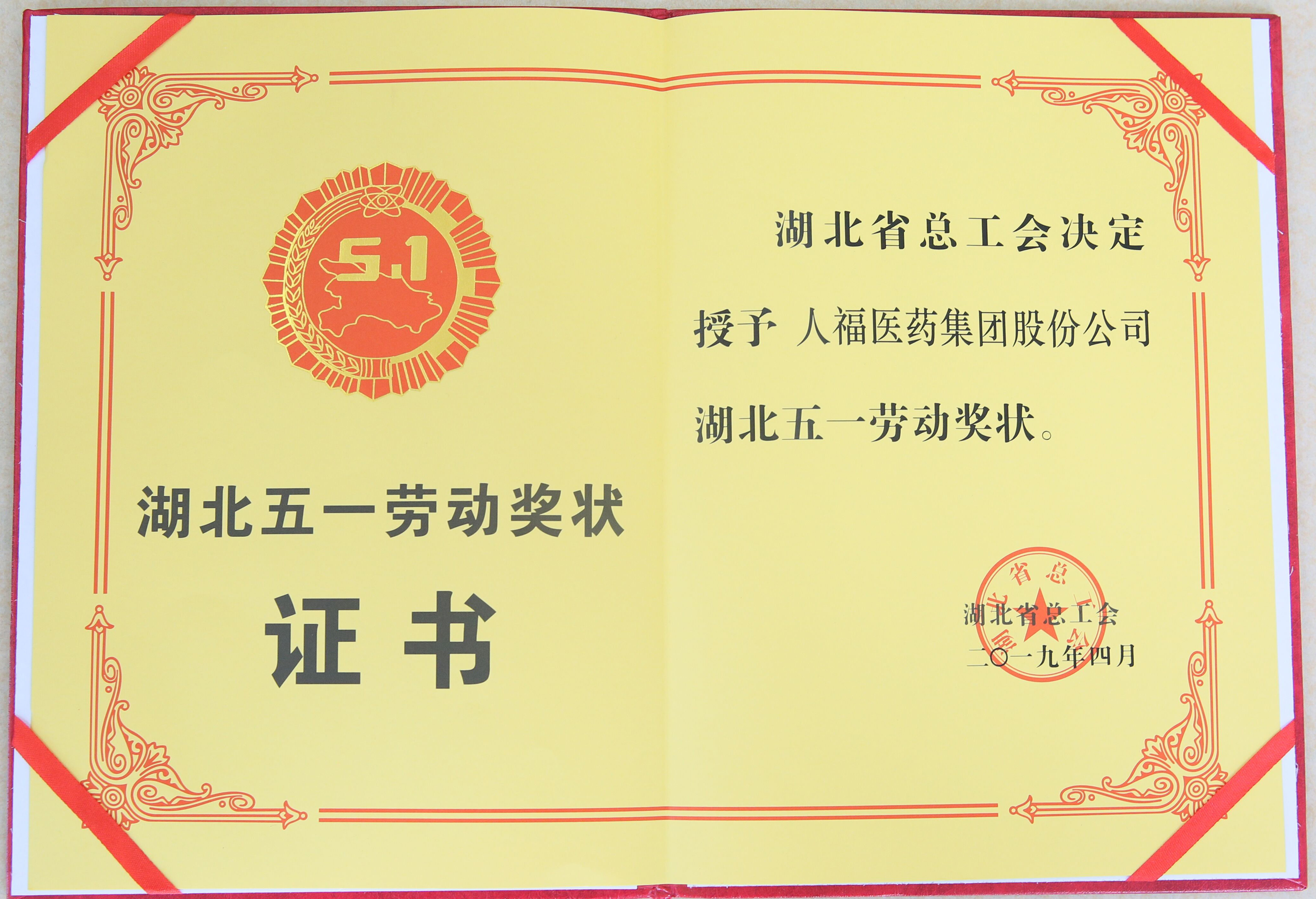 ? ? ? ? ? ? ??4月24日上午,湖北省慶?!拔逡弧眹?guó)際勞動(dòng)節(jié)暨表彰大會(huì)在洪山禮堂舉行,宣讀了《湖北省總工會(huì)關(guān)于表彰2019年湖北五一勞動(dòng)獎(jiǎng)和湖北省工人先鋒號(hào)的決定》,并向獲獎(jiǎng)的先進(jìn)集體和先進(jìn)個(gè)人代表頒獎(jiǎng)。人福醫(yī)藥集團(tuán)榮獲“湖北五一勞動(dòng)獎(jiǎng)狀”。