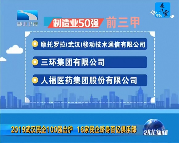 ? ? ? ?7月29日,2019武漢民營企業(yè)100強(qiáng)、武漢民營制造業(yè)企業(yè)50強(qiáng)排行榜正式發(fā)布。人福醫(yī)藥集團(tuán)再次入圍,榮膺武漢民營企業(yè)100強(qiáng)第14位、武漢民營制造業(yè)企業(yè)50強(qiáng)第3名。
