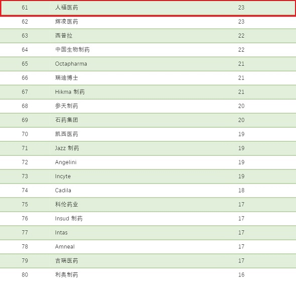 ? ? ? 根據(jù)醫(yī)藥咨詢公司 Novasecta 的一份全球制藥公司 100 強(qiáng)榜單,人福醫(yī)藥集團(tuán)榮膺全球制藥公司100強(qiáng)第61位,該榜單按照制藥企業(yè)2018年集團(tuán)總收入(包括制藥業(yè)務(wù)外收入)進(jìn)行排名。