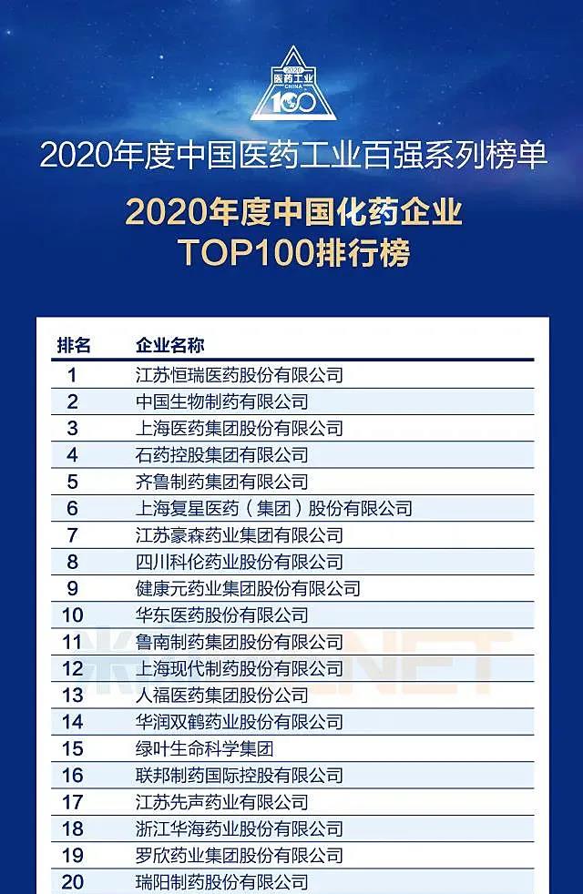 7月21日,在米內(nèi)網(wǎng)2021年米思會現(xiàn)場,2020年度中國醫(yī)藥工業(yè)百強系列榜單正式發(fā)布。百強系列榜單分為“中國化藥企業(yè)TOP100排行榜”“中國中藥企業(yè)TOP100排行榜”等5大子榜,人福醫(yī)藥集團位列中國化藥企業(yè)TOP100排行榜第13位。