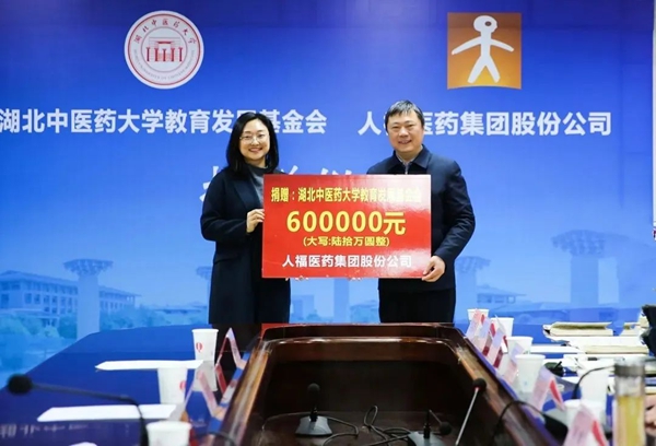 ? ? ? 3月23日,人福醫(yī)藥集團(tuán)與湖北中醫(yī)藥大學(xué)教育發(fā)展基金會舉行捐贈儀式,人福醫(yī)藥集團(tuán)旗下武漢人福醫(yī)療管理有限公司向湖北中醫(yī)藥大學(xué)教育發(fā)展基金會捐贈60萬元。捐贈將在學(xué)校教育發(fā)展基金會設(shè)立“武漢人福醫(yī)療專項(xiàng)基金”,用于大學(xué)生創(chuàng)新創(chuàng)業(yè)項(xiàng)目扶持,培育創(chuàng)新創(chuàng)業(yè)成果;支持中醫(yī)藥產(chǎn)業(yè)發(fā)展相關(guān)的人才培養(yǎng);助力校友活動。湖北中醫(yī)藥大學(xué)黨委書記唐峻,湖北中醫(yī)藥大學(xué)校長、教育發(fā)展基金會副理事長呂文亮,湖北中醫(yī)藥大學(xué)副校長、教育發(fā)展基金會副理事長黃必勝,湖北中醫(yī)藥大學(xué)校黨委常委張子龍,人福醫(yī)藥集團(tuán)總裁鄧霞飛、人福醫(yī)藥集團(tuán)黨委副書記孔娜、武漢人福醫(yī)療管理有限公司董事長曾志敏等領(lǐng)導(dǎo)共同參加捐贈儀式。